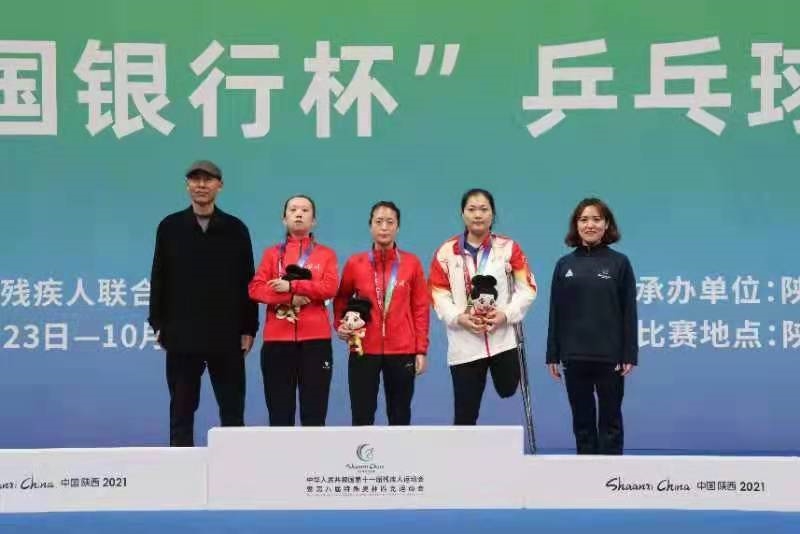 乒乓球比赛,在女子单打TT7级决赛中,王睿战胜队友姜姗,荣获冠军,另一名四川选手陈剑英获第四名。在TT6级男子单打决赛中,四川选手黄家鑫获得银牌,罗能获得铜牌。截止10月27日,四川乒乓球代表队在本届残运会上的比赛已经全部结束,共获得5枚金牌2枚银牌1枚铜牌2个第四名1个第六名,圆满完成比赛任务。