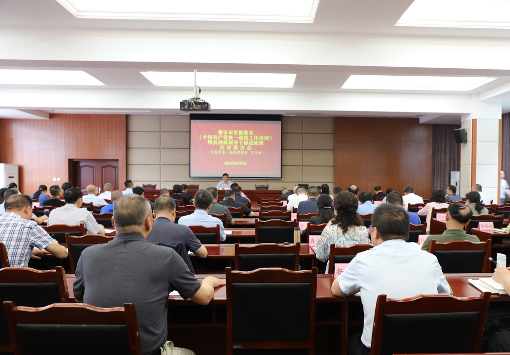 6月9日,雅安市贯彻落实《中国共产党统一战线工作条例》宣讲报告会在市委党校举行。雅安市委常委、统战部部长王冬林作主题报告。