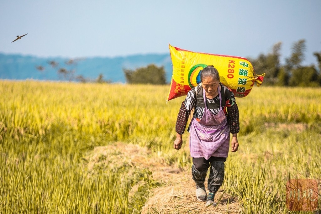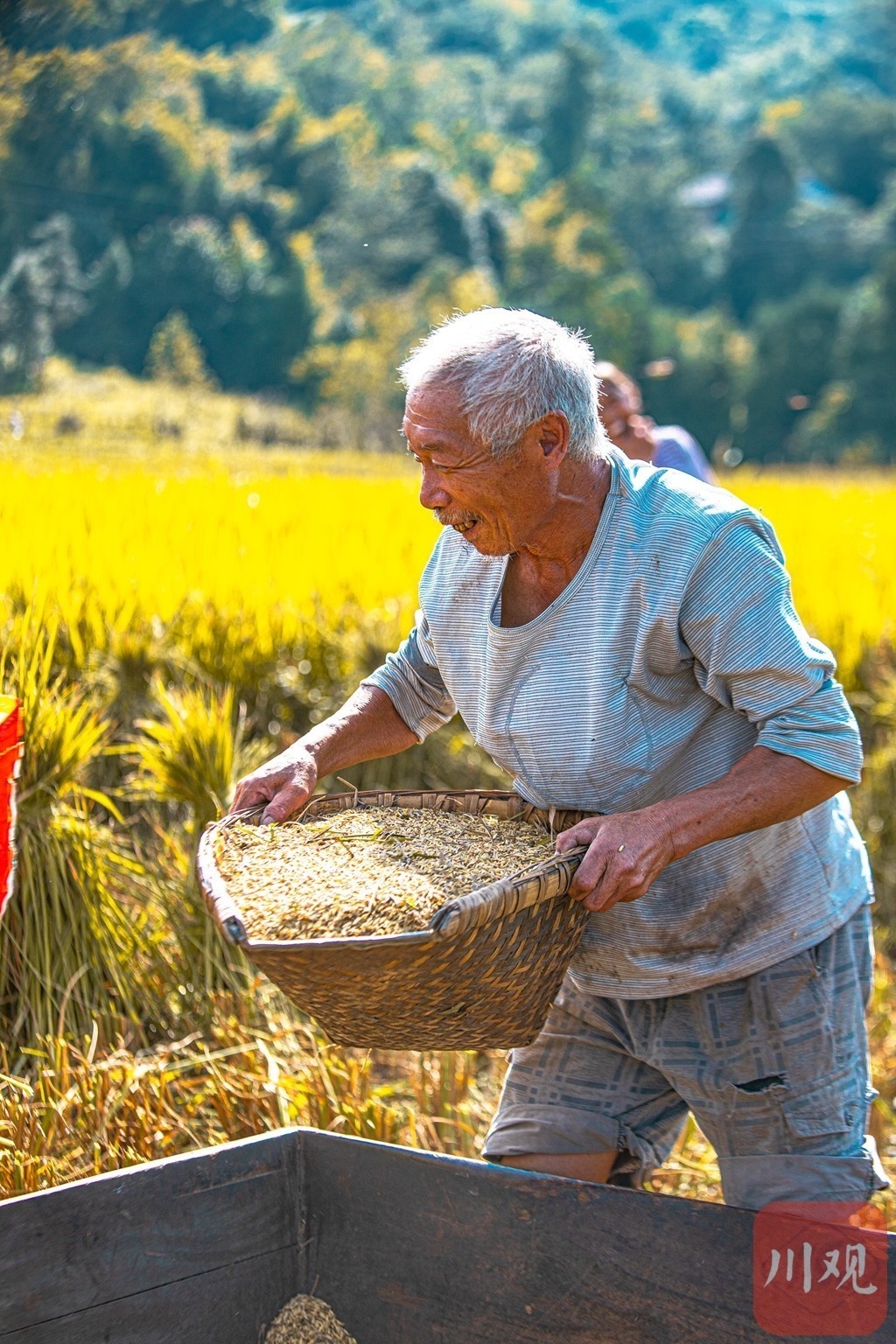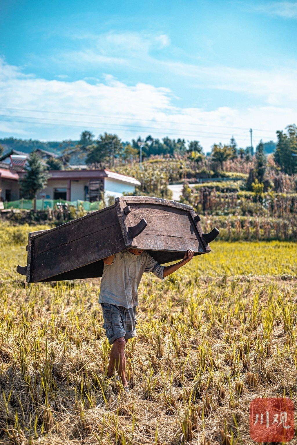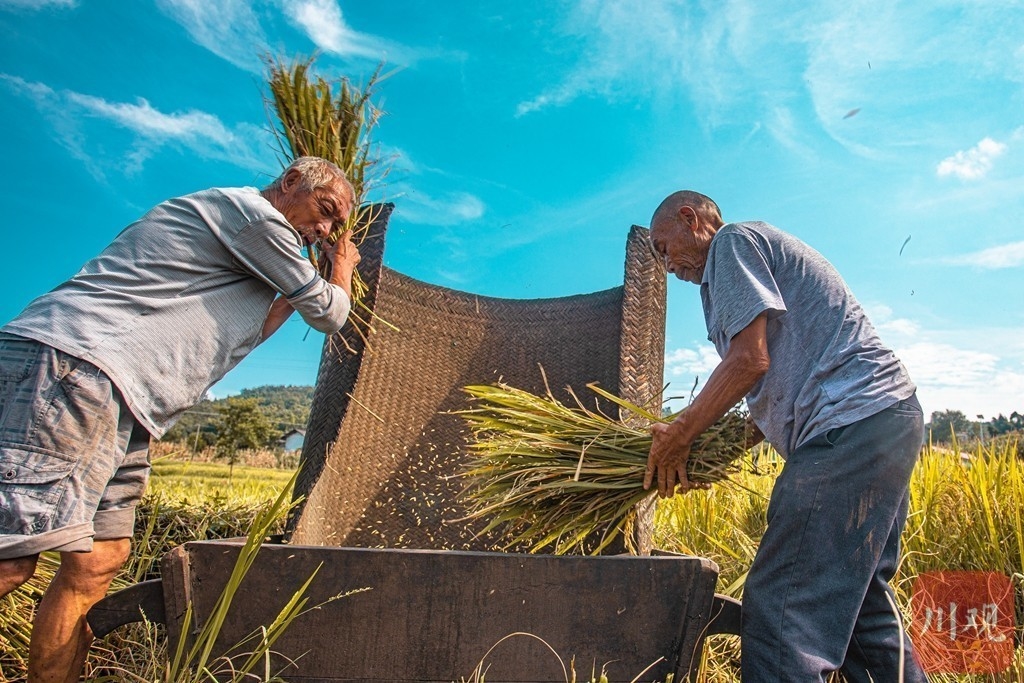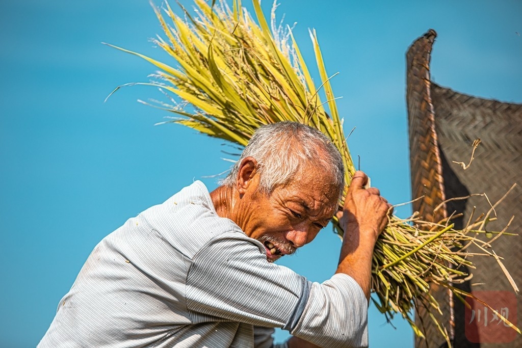 丰收的金黄色是秋天最好的诠释,在乐山市沙湾区四峨山村,每到秋天,人们就忙着收谷。稻穗一重三轻敲击着木板,如战鼓擂擂,稻谷应声而落。这样的秋天是最美的,勤劳的人民,丰收的季节…