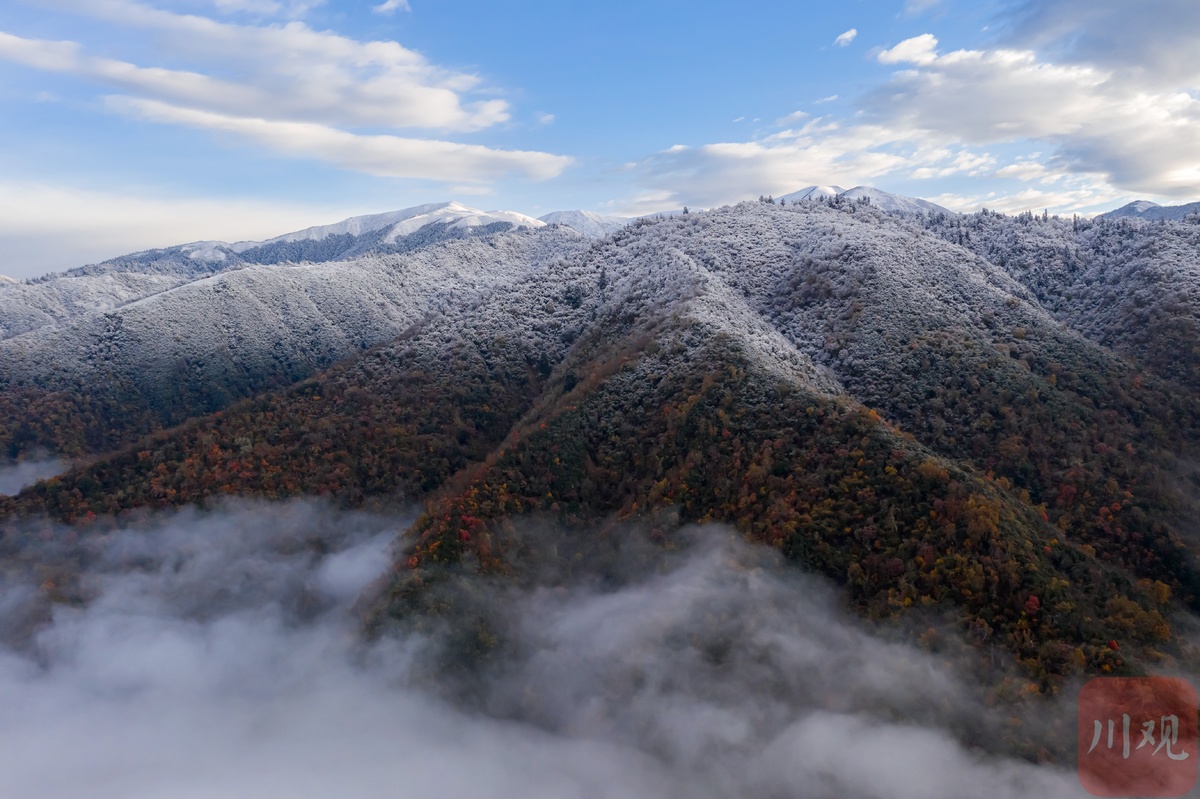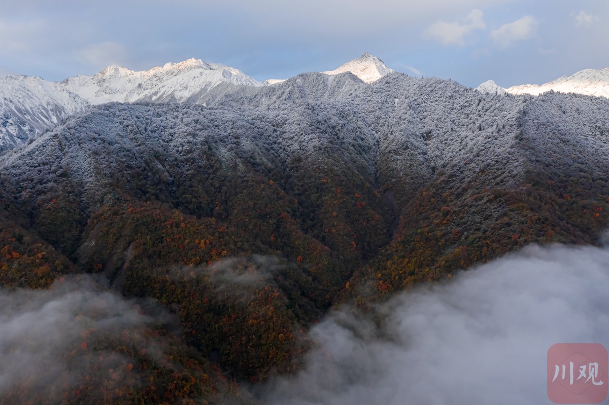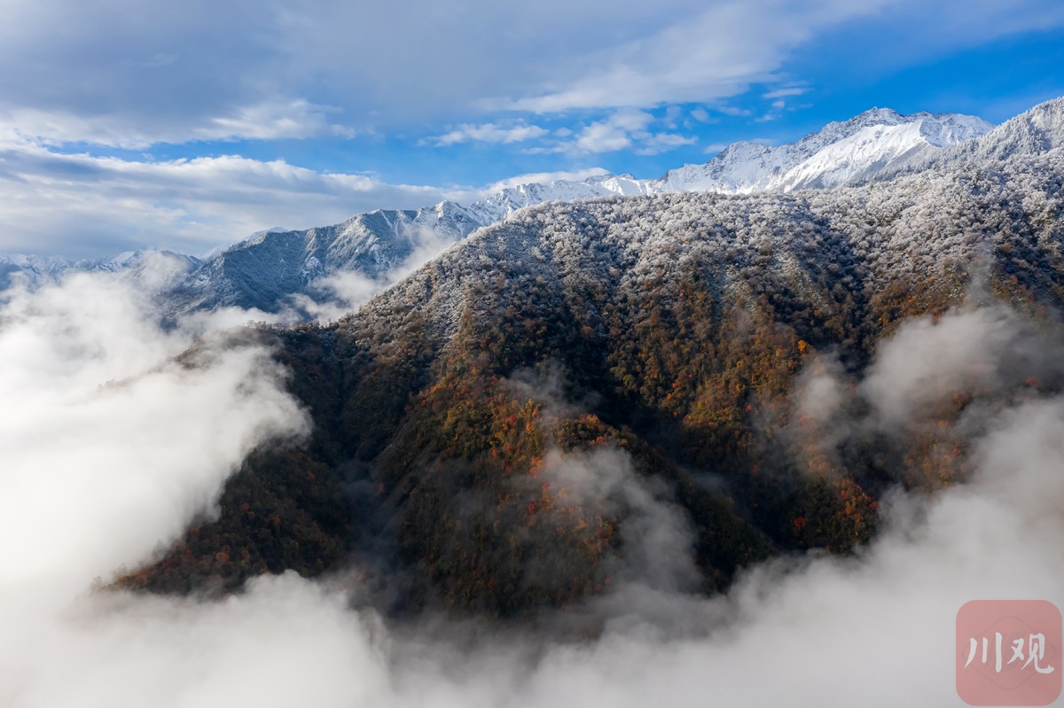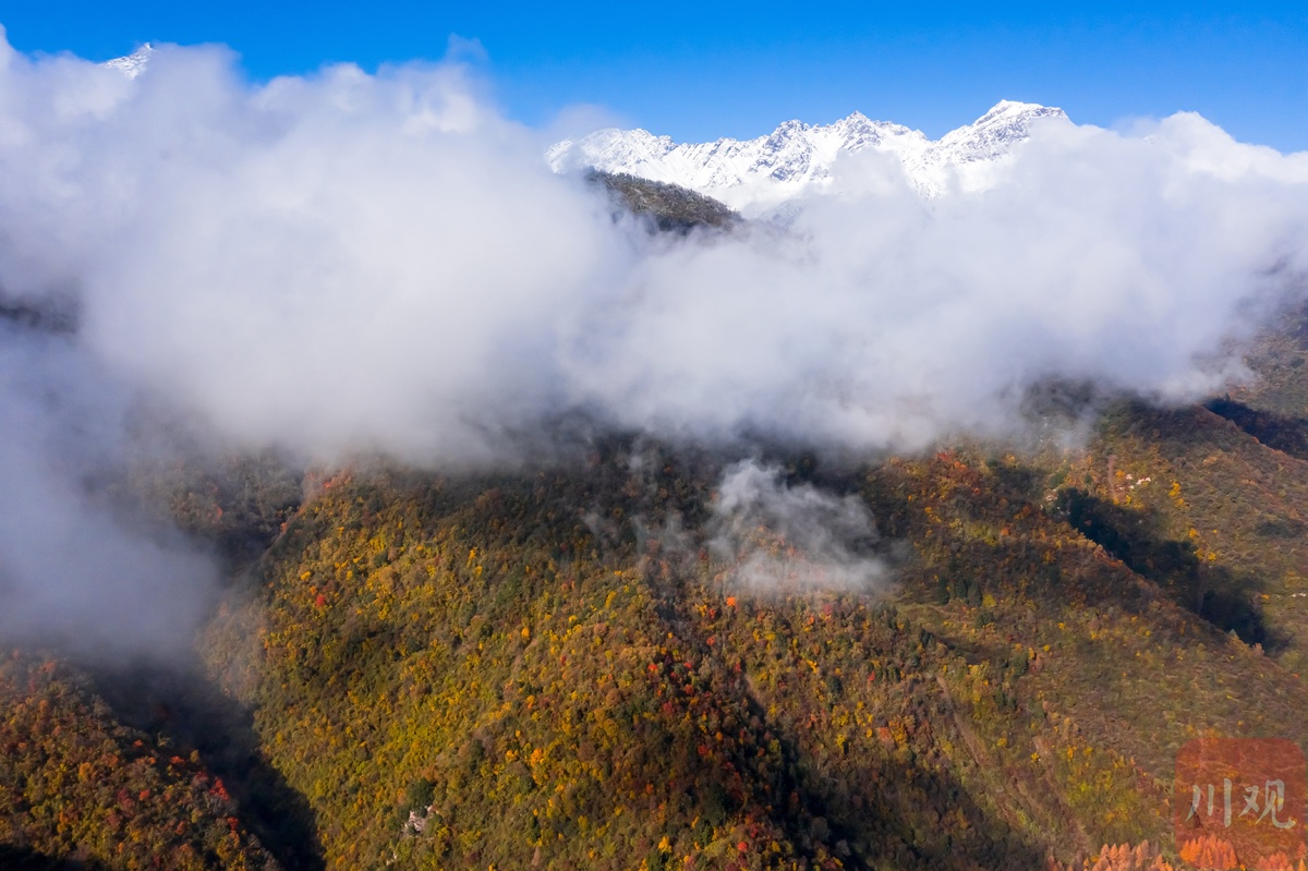 #秋色染川#平武扒昔加古寨现云海 雪山彩林如神话世界