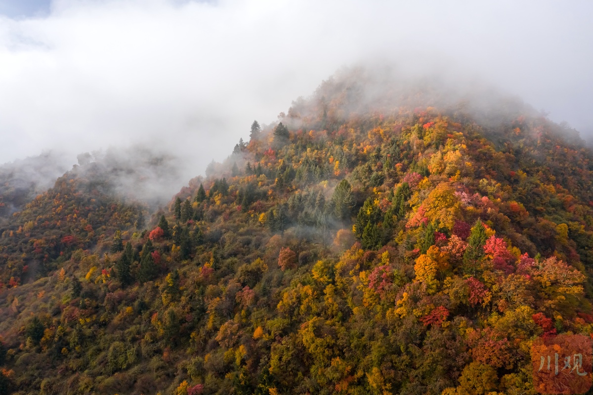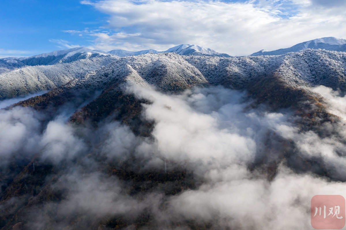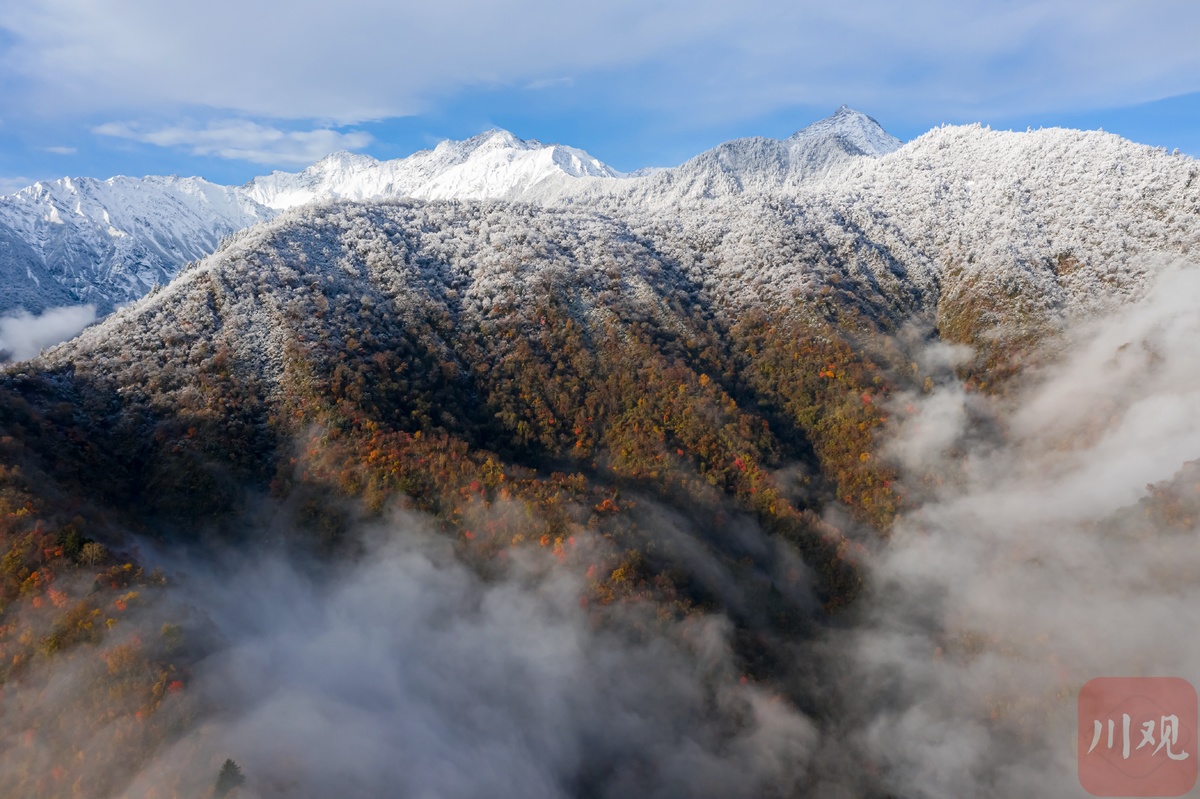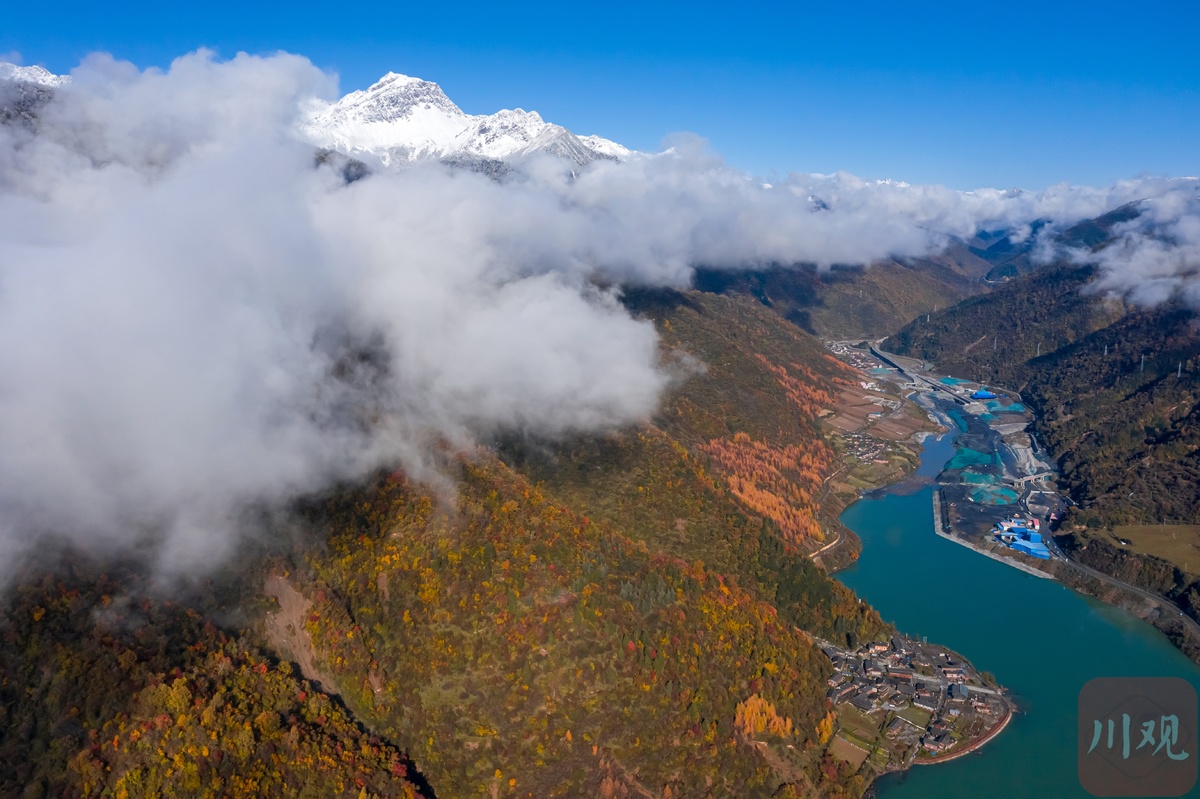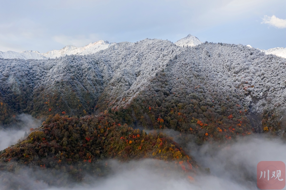 #秋色染川#平武扒昔加古寨现云海 雪山彩林如神话世界