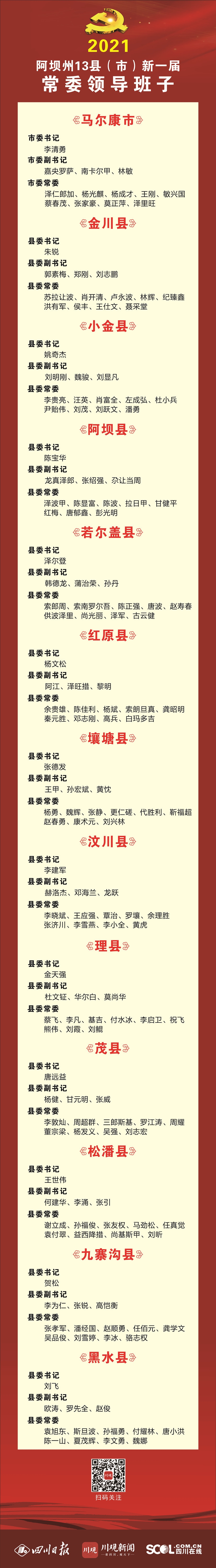 收藏丨一图速览阿坝州13县(市)新一届常委领导班子名单