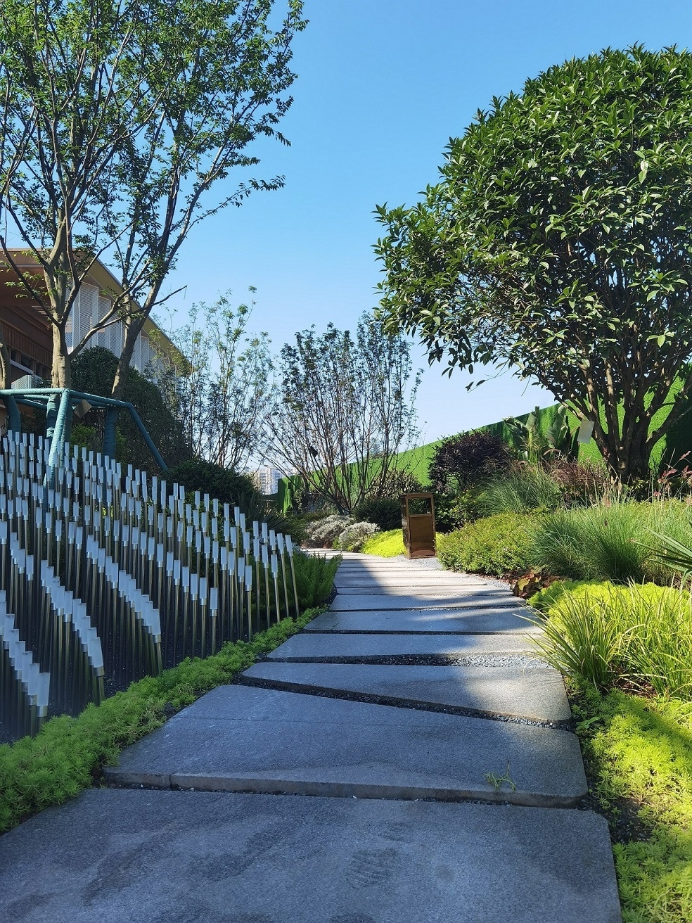 一路来到三岔TOD景观示范区,古朴的石板路、时尚的科技灯、缤纷的绿植和流淌的溪水,构建出邻里花园的自然清新。“未来,三岔TOD景观示范区将与周边公园连成一片,打造开门见绿的公园城市社区。”轨道城投集团相关负责人介绍,三岔TOD还将借鉴纽约“高线公园”理念打造空中景观,通过城市绿轴、线下公园、退台景观、下沉庭院、空中观景平台、屋顶绿化,呈现“无边界”绿色空间。