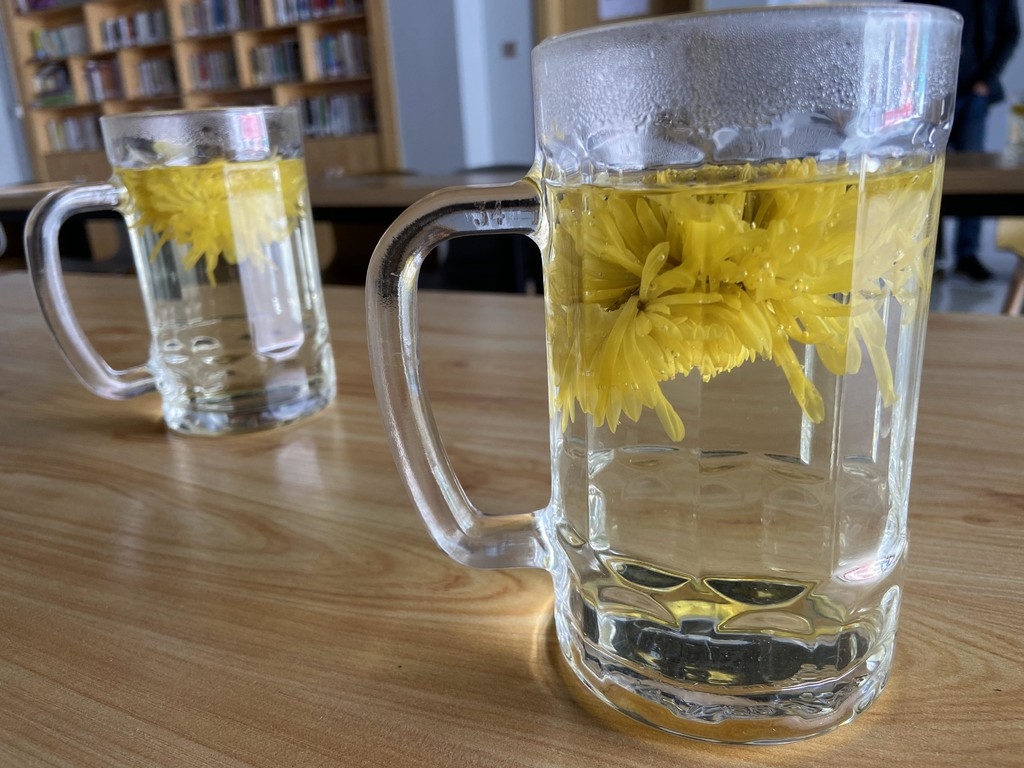 记者现场将金丝皇菊冲泡后,菊花色如黄金在水中舒展,闻着气味淡雅,喝到嘴里,菊味持久。除了可观赏外,它还含有多种的氨基酸、维生素和微量元素,具有散风去热、明目功效,以及具有降血脂、扩张冠状动脉和抑菌等作用。