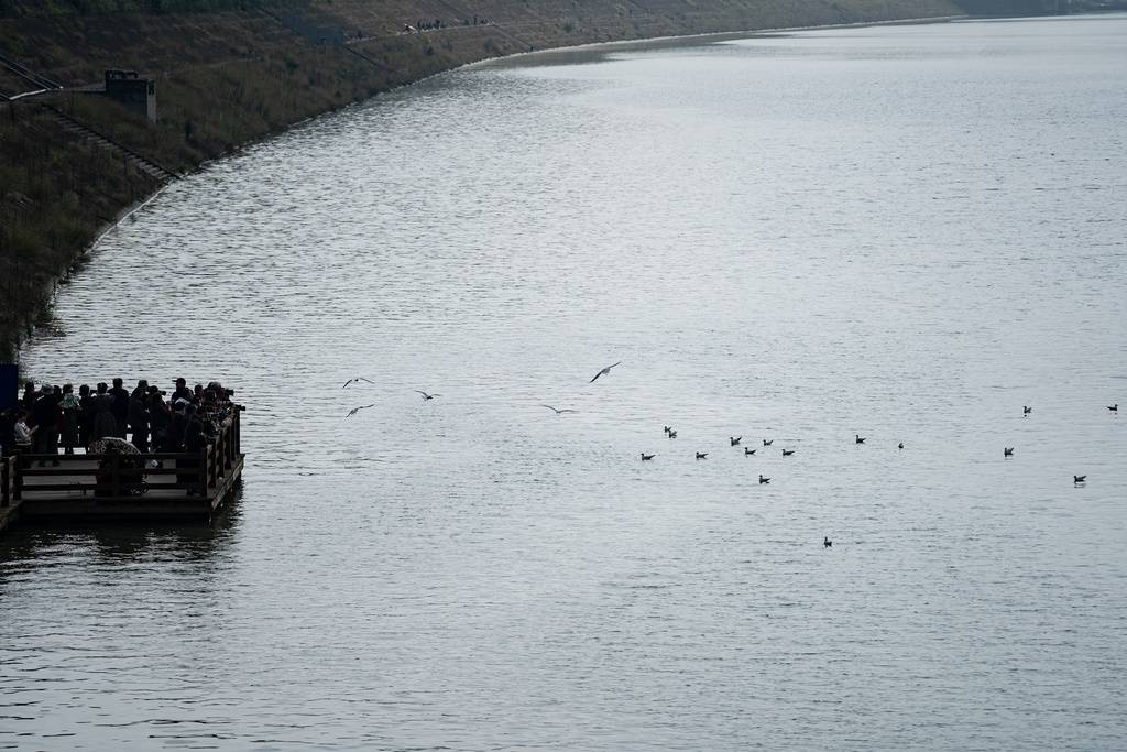 11月5日上午,久违的深秋阳光倾泻,内江城区内甜城湖两岸沐浴在柔和的暖阳中。此时,甜城湖畔来了一群远道而来的红嘴鸥。它们时而展翅翱翔,热闹的场面吸引不少市民前来投喂或者拍照打卡,勾勒出人与自然和谐共处的生态画卷。