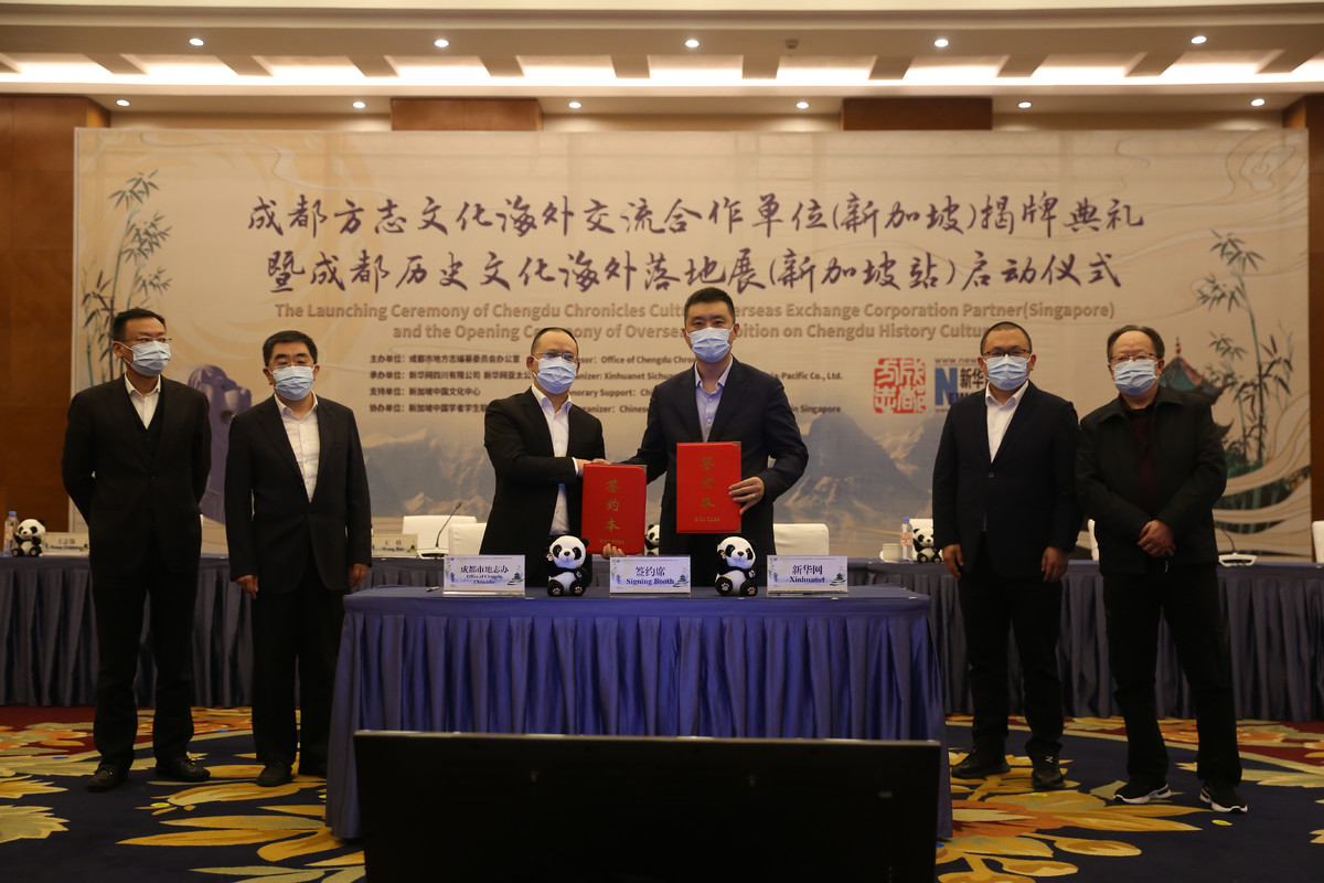 方志文化是中华传统文化的重要载体,推动成都方志文化活起来、热起来,11月5日,成都方志文化海外交流合作单位(新加坡)揭牌典礼暨成都历史文化海外落地展(新加坡站)启动仪式举行,本次活动采取“多人多地”模式,国内会场和新加坡会场的参会嘉宾通过分屏视频、线上连线进行沟通交流,多方位呈现成都方志故事、讲好中国故事,拓展中新人文交流空间,为中新交流合作注入新活力。
