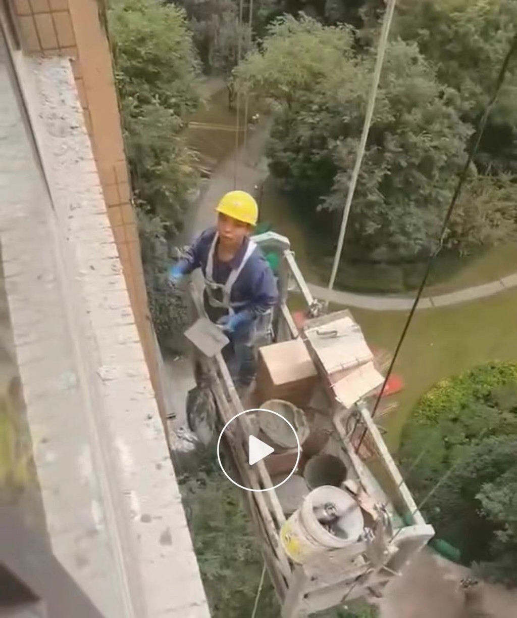 网传视频:正在成都高新区保利百合小区高空作业的装修工人,网友们都很关心。