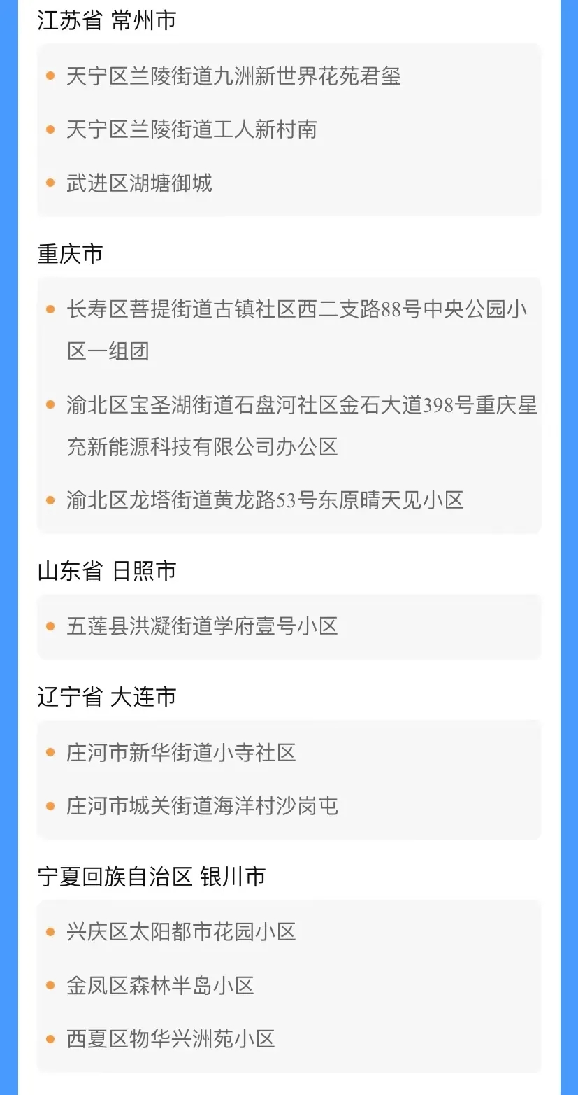 11月6日0—24时,31个省(自治区、直辖市)和新疆生产建设兵团报告新增本土确诊病例50例、本土无症状感染者21例。目前已有甘肃、内蒙古、陕西、青海、四川、湖北、湖南、贵州、黑龙江、江西、宁夏、河北、北京、云南、山东、重庆、江苏、河南、浙江等多个省份报告阳性病例。