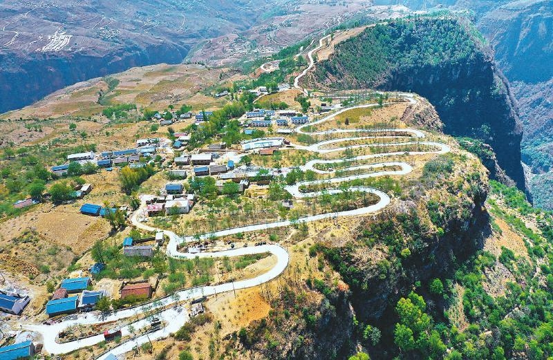 在峡谷边缘坡地建安全住房的布拖县拉果乡布歪村。尹钢 摄