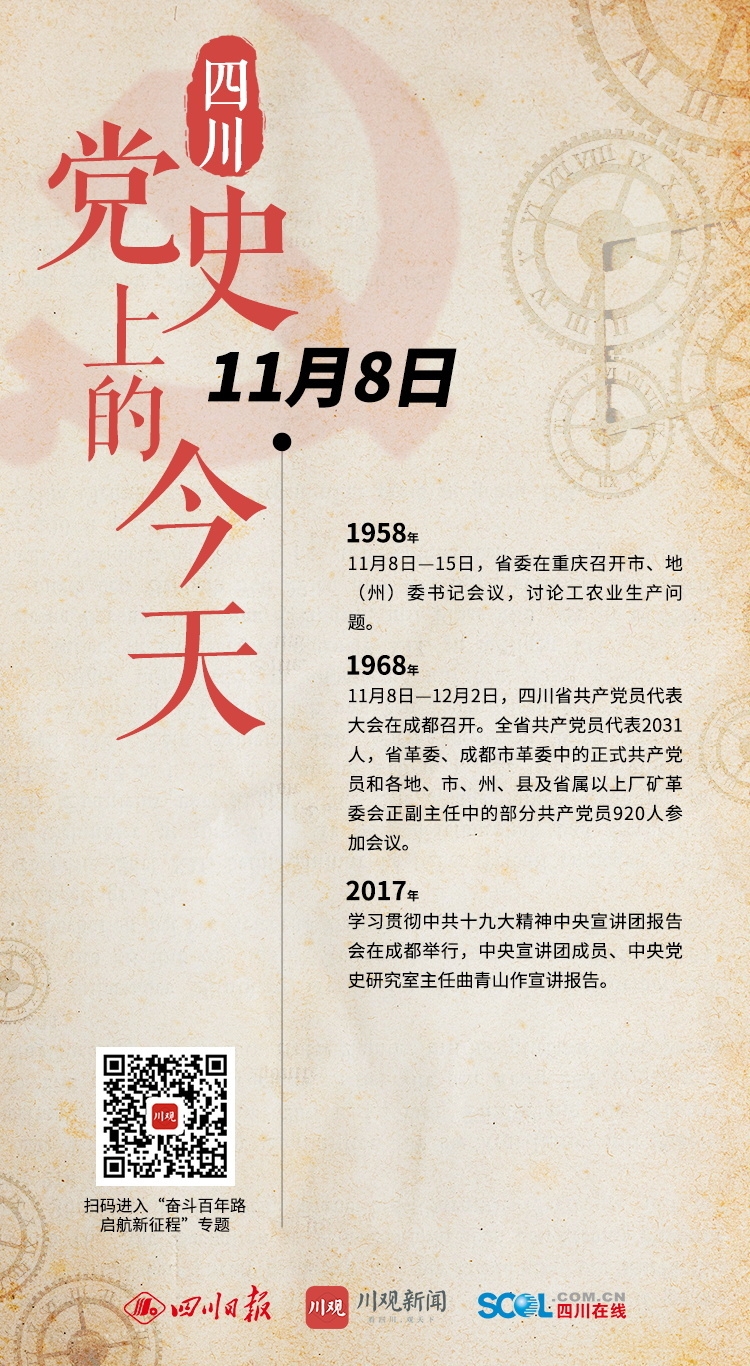1968年 11月8日—12月2日,四川省共产党员代表大会在成都召开。全省共产党员代表2031人,省革委、成都市革委中的正式共产党员和各地、市、州、县及省属以上厂矿革委会正副主任中的部分共产党员920人参加会议。