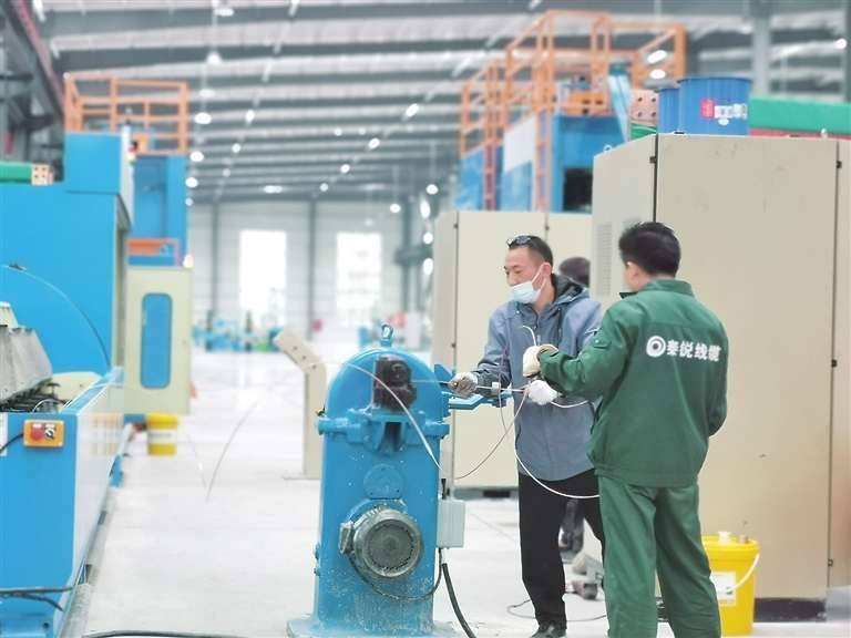 在入驻企业四川欧能电缆项目车间,记者看到各类设施设备按照拉丝、绞合、绝缘、成缆、护套等工艺环节,有序排列在生产线上。总投资4000余万元的车间双生产线项目初具雏形,将于今年12月中旬正式投产。