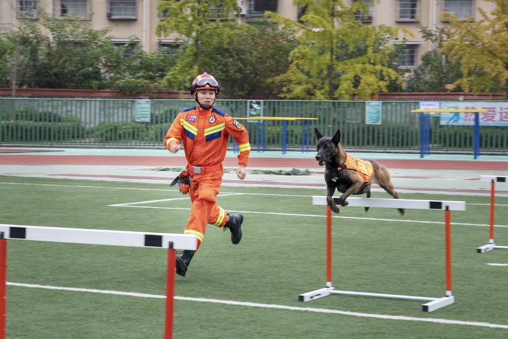 “太子!上!”11月9日,南充市高坪三中操场,来自南充市消防救援支队的四只搜救犬整装待发,“太子”是其中服役年龄最长并且参加过九寨沟地震救援的搜救犬。当天它们有特殊的任务,让更多观众认识消防、了解消防、关注消防。