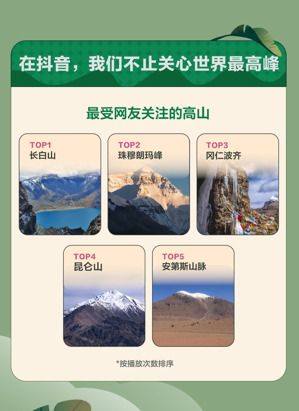兴趣是大家关注自然科普内容的主要原因之一。报告显示,在网友最关注的5大山脉中,长白山力压世界最高峰珠穆朗玛峰,一同入榜的还有冈仁波齐、昆仑山、安第斯山脉。而在最受欢迎的动物中,狮子成为名副其实的“百兽之王”,相关科普视频无论是点赞量还是播放量均位居动物榜第一。植物榜中,网友最喜欢看仙人掌相关的科普内容,虽然它浑身长满刺,却丝毫没有阻碍大家的热情。