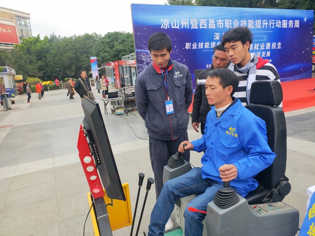 凉山州在职业技能提升行动服务周期间组织劳动者体验叉车模拟操作(资料图片)