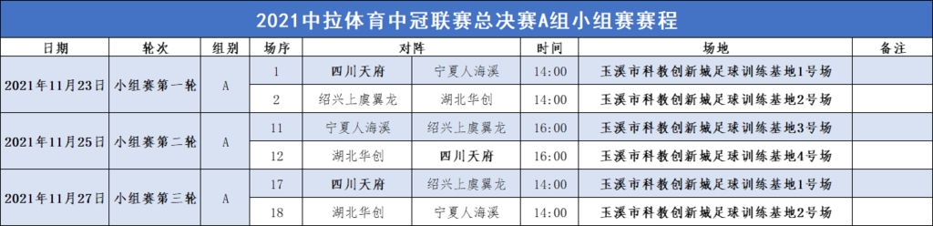11月9日,2021年中国足球冠军联赛总决赛抽签仪式在北京进行。四川天府足球俱乐部落位A1签位,与绍兴上虞翼龙、湖北华创、宁夏人海溪同组竞争。比赛将于11月23日至12月4日在云南玉溪进行,获得本年度中冠联赛总决赛的前4名,以及乙冠附加赛的胜队(中冠第5-6名参加)将有机会升入2022中乙联赛,登上职业赛场。而四川天府的目标就是打进前四,争取获得参加2022赛季中国足球乙级联赛的资格。