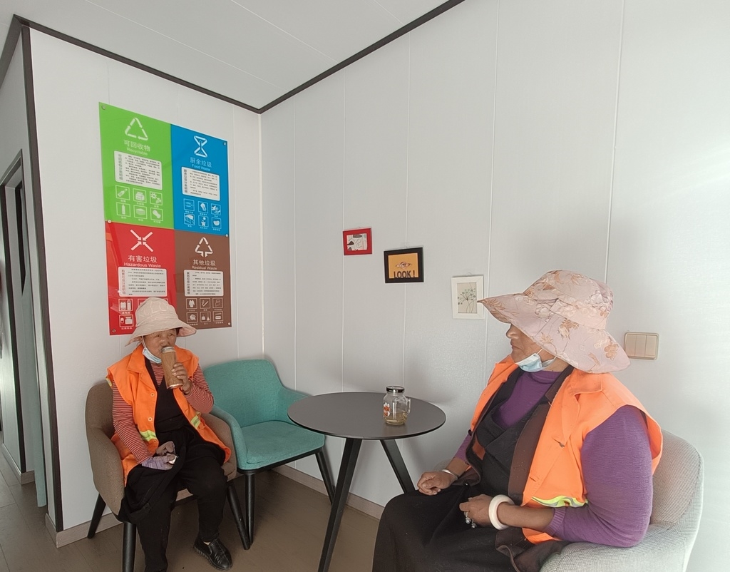 11月10日中午,巴塘城区环卫工人拥珍收拾整理好清扫工具,打开驿站的门,洗手消毒,拿出饭盒放进微波炉,坐在椅子上享受休憩时光。“饿了,能热上一顿饭菜;渴了,能喝上一杯热水;累了,能坐下歇歇脚。”谈到爱心驿站,拥珍竖起大拇指,“现在我们的工作环境舒服!”