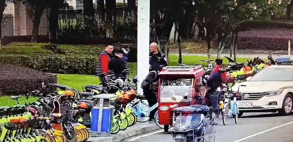 与此同时,廖建通知了正在值守的战友陈雳,对犯罪嫌疑人前期作案线路再次进行视频巡查。果然,嫌疑人再次出现在监控画面中。根据前期掌握线索,陈雳断定此人与前段时间盗窃电动自行车电瓶案件嫌疑人的特征相符,基本可以锁定。“廖建!你到地铁口D出口附近去看一下,根据这人前面的作案线路,他应该会在地铁口周边下手!”随后,辅警廖建会同办案民警迅速赶往地铁口电瓶车停放区域。