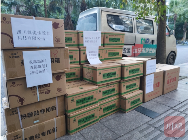 从四川省青年志愿者协会了解到物资需求后,省青联委员、四川佩优佳教育科技有限公司董事长江寒也立即为成华区、锦江区、双流区服务站的志愿者送上一次性医用口罩3000余个、消毒酒精700瓶、暖宝宝300包以及医用手套5000双。