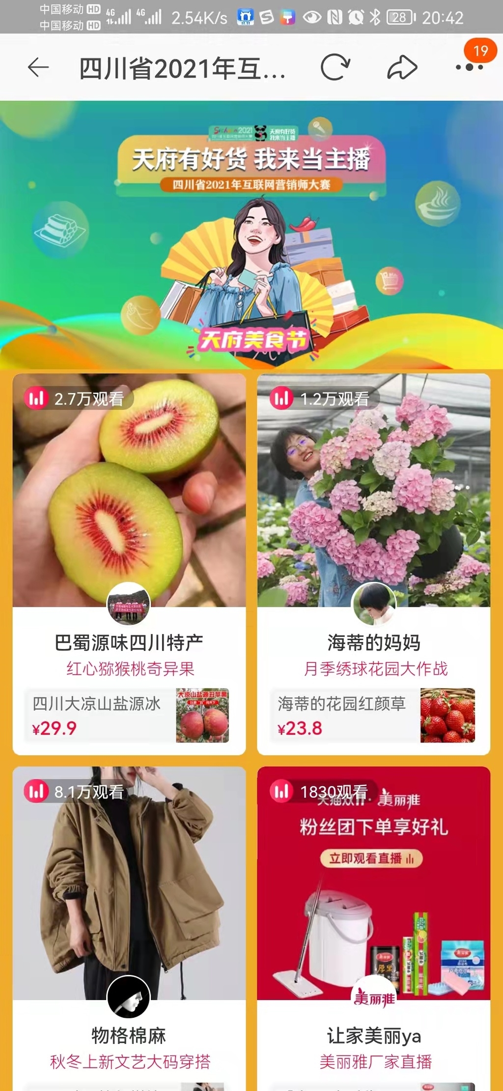 省总工会相关负责人介绍,今年9月,省总工会、省委网信办、经信厅、人社厅、商务厅共同启动了四川省2021年“天府有好货,我来当主播”互联网营销师大赛。举办本次大赛,旨在促进新就业形态劳动者群体素质提升,推动新时代互联网营销行业从业人员队伍建设,围绕直播电商带来的新机遇,助力我省乡村振兴和“川字号”品牌相关产业发展壮大,不断为全省培育出合格的互联网营销人才。经过前期筹备、动员部署、赛前培训、8场次主题推流、选手激烈鏖战,历时1个多月的大赛初赛已圆满结束。