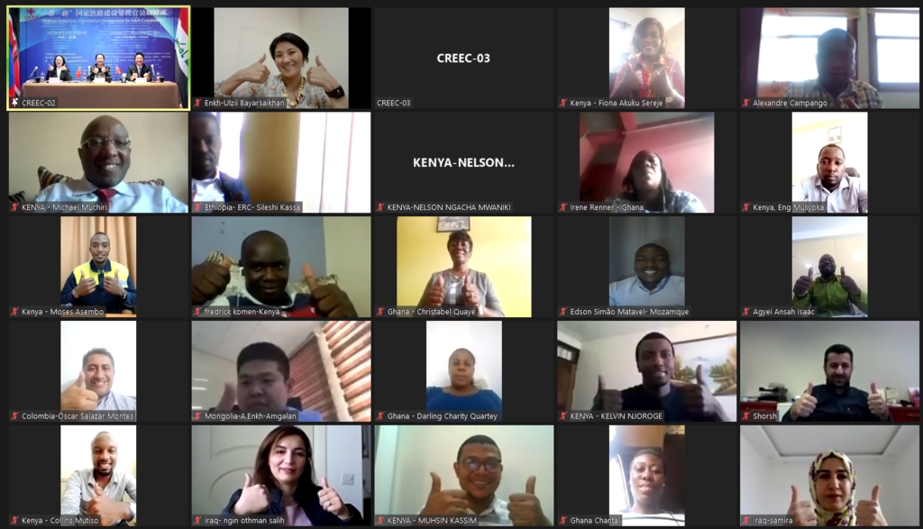 该研修班为期14天,共有来自埃塞俄比亚、哥斯达黎加、哥伦比亚、加纳、肯尼亚、莫桑比克、蒙古、塞拉利昂、伊拉克、赞比亚10国的62名学员参与研修,期间邀请了9位内部专家就中国铁路建设模式及建设程序、铁路总体规划与选线、铁路客站及综合体、铁路机车车辆及车辆基地等内容举办专题技术讲座,并通过云参观学习了四电集成、模拟驾驶等相关知识。通过直播教学、交流研讨及云参观等方式,学员们多形式、多角度地感受到了中国铁路的高速发展,了解和掌握了中国铁路建设管理的经验和技术。