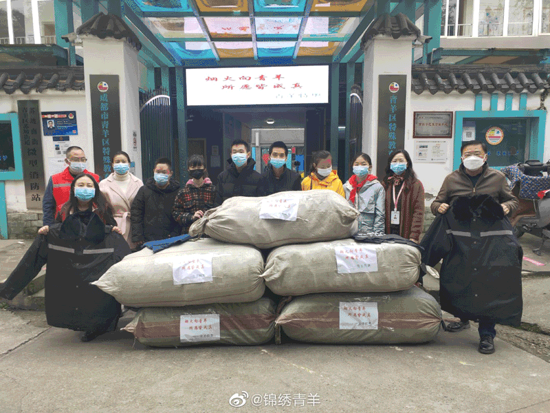 11月15日上午,在青羊区特殊教育学校门口,几大袋贴着“烟火向青羊,所愿皆成真”字样的货物格外显眼。这是13名来自青羊的特奥冠军和4名特奥教练员拿出他们参加成都市第五届特殊奥林匹克运动会的不多的冠军奖金和教练津贴购买了100件多功能大衣,捐赠给奋战在疫情防控一线的社区工作人员以及志愿者们,用满满的爱给他们带去丝丝温暖。