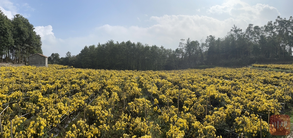 初冬时分,位于乐山市沙湾区轸溪镇寨子村的百亩金丝皇菊盛开了。