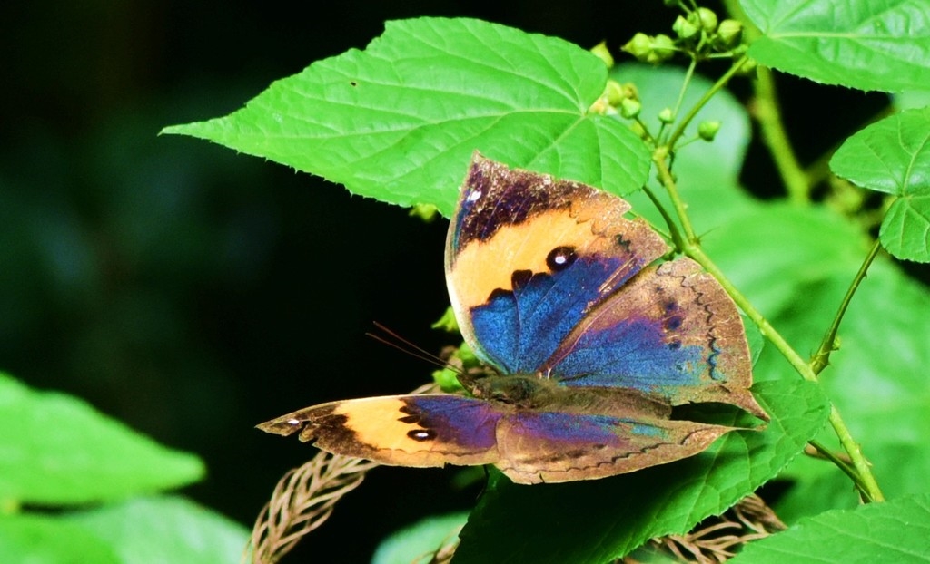 枯叶蝶学名枯叶蛱蝶,静止时,合起的两片翅膀从侧面看酷似一片枯叶。这样的装扮自然会给天敌错觉,对自己形成很好的保护。飞起来的枯叶蛱蝶,则完全是另一种姿态。翅背面艳丽的色彩在阳光下会反射出耀眼的光泽,飞舞的姿态和很好看,甚至可与凤蝶媲美。