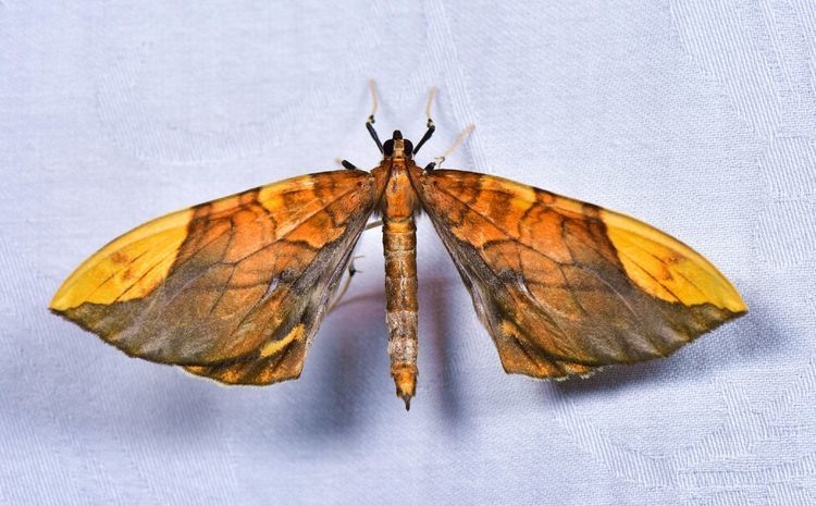 当它收拢后翅你便发现,酷似两片又皱又蔫的秋叶,这就是有名“中华枯叶尺蛾”。