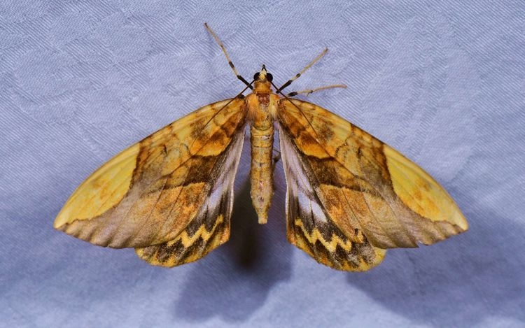 这是利用昆虫的趋光性,夜间在灯布上拍下的“橘褐枯叶蛾”。