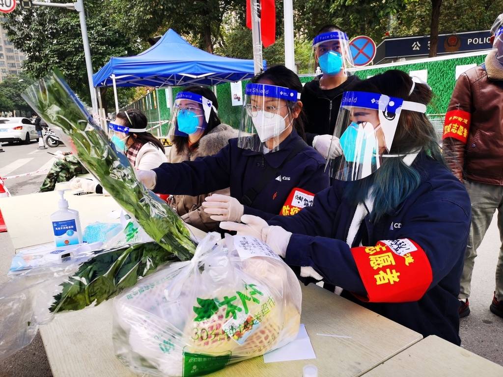 疫情防控志愿服务中,职工志愿者们分工协作、有条不絮,有的负责指挥送物资的车辆停放,检查绿码,测量体温,放行物资;有的负责接收物资,消杀后为物资贴上“合格证”;还有的负责清点物资,贴上标明楼栋门牌号的“身份证”后进行投放。