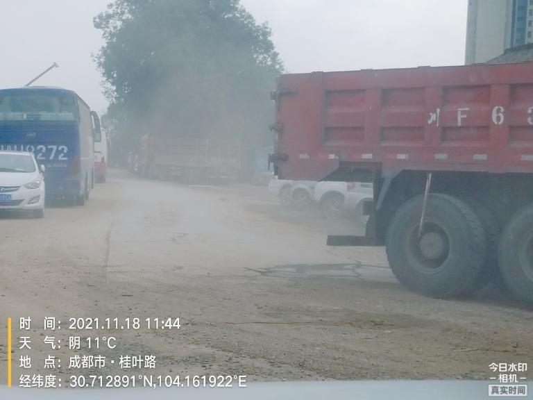 11月18日,桂叶路道路:道路积尘现象严重,扬尘问题突出。