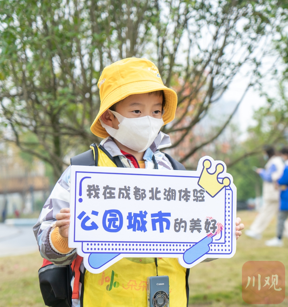 11月20日,由四川在线主办的“娃娃眼中的公园城市”——成都青少年全媒体素养大赛正式开启线下志愿体验活动。部分“小小城市体验官”于北湖生态公园实地打卡拍照。