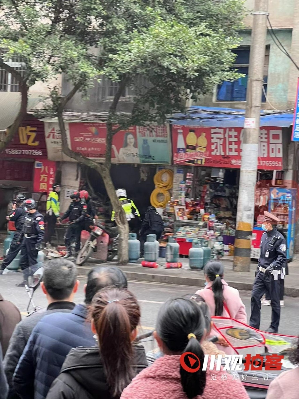 实拍:巴中液化气店失火 警民合力抢险