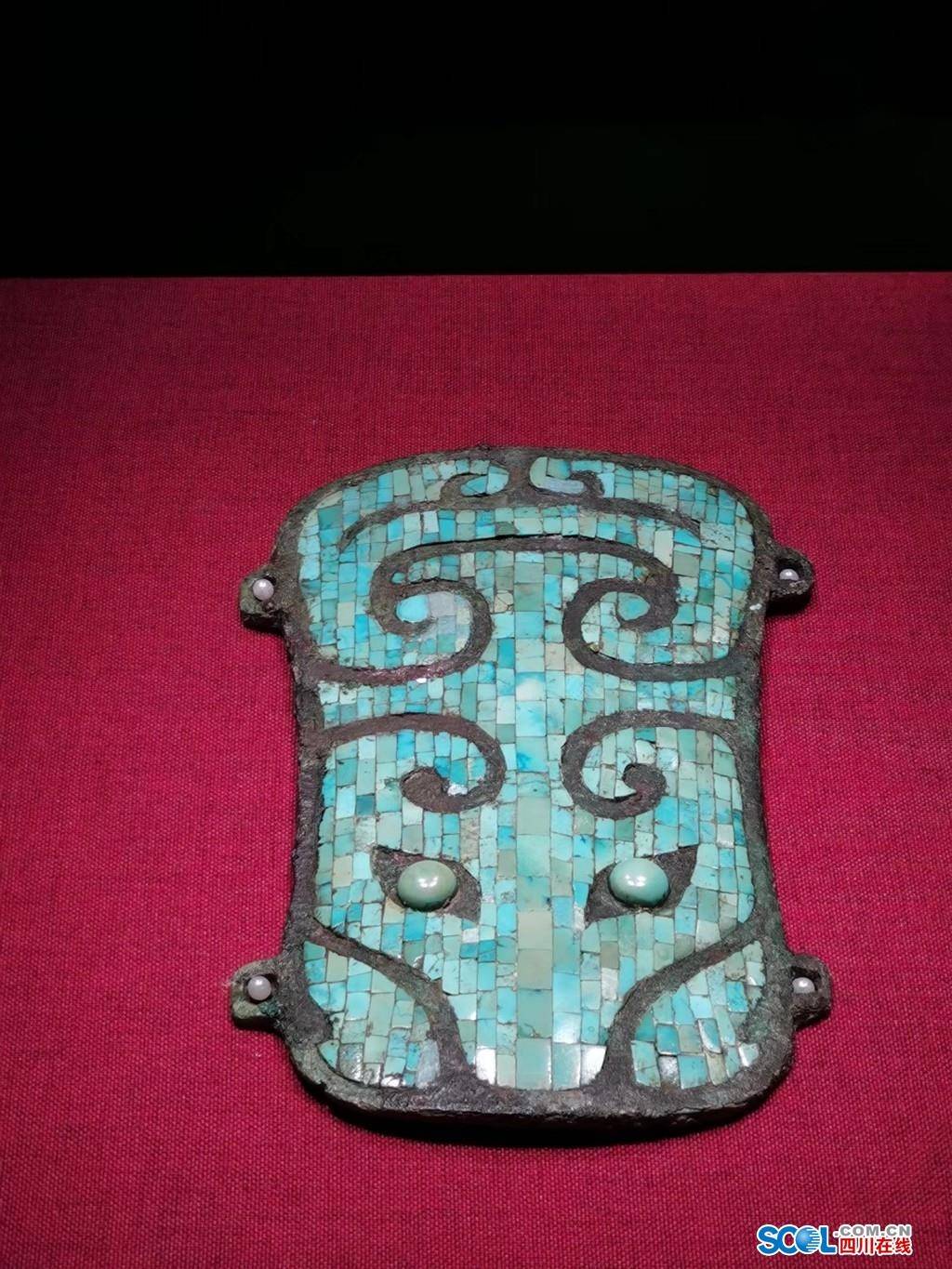 三星堆出土的镶绿松石铜版饰