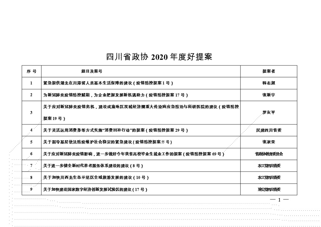 这49件“四川省政协2020年度好提案”到底是什么内容、由谁提出?