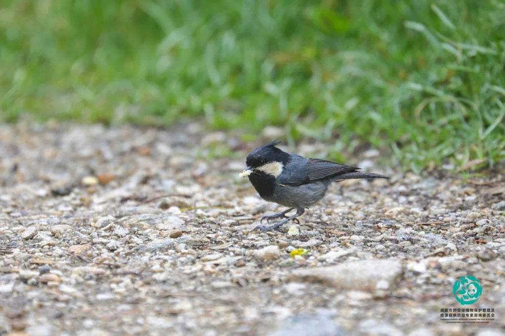 黑冠山雀,雀形目山雀科。头、颈部以及冠羽、喉至上胸为黑色,后颈和两颊部各有白色大斑块,身体灰暗,尾下覆羽棕色。是我国西南地区中高海拔较为常见的森林鸟类。属于国家“三有”保护动物。监测团队于2021年7月24日在大邑县观测到2只,为成都市新记录。