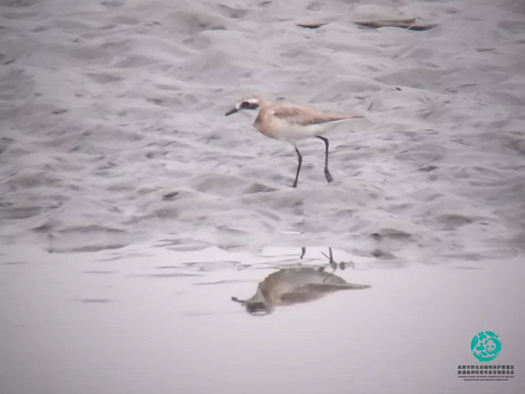 蒙古沙鸻,鸻形目鸻科。与成都有确切分布记录的铁嘴沙鸻(Charadrius leschenaultii)非常相似,但体型较小,喙较短小纤细。迁徙季主要经过我国东部,栖息于沿海、河流的滩涂环境,觅食小型无脊椎动物。属于国家“三有”保护动物。监测团队2021年9月11日在新津区金马河首次记录了1只成年个体。