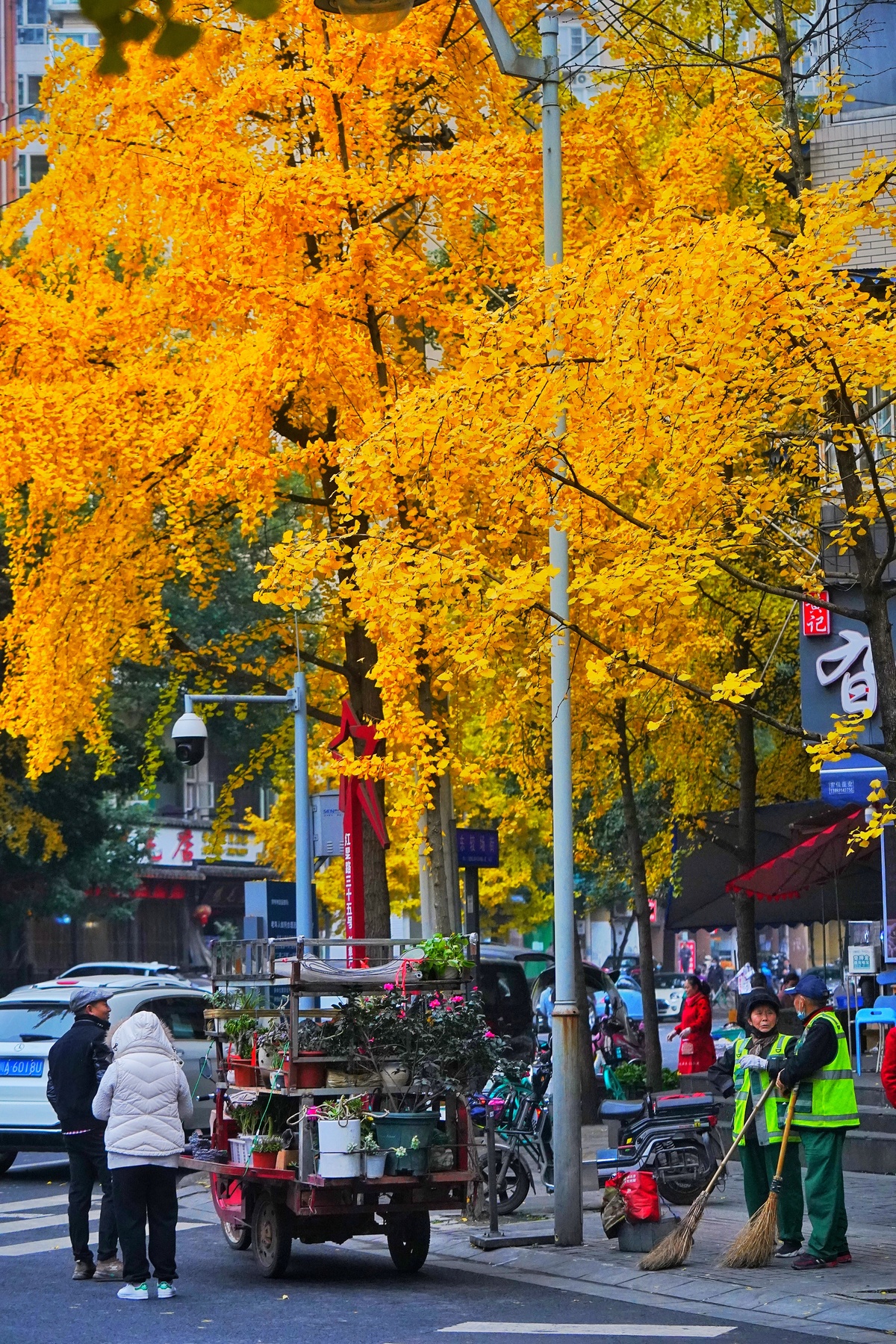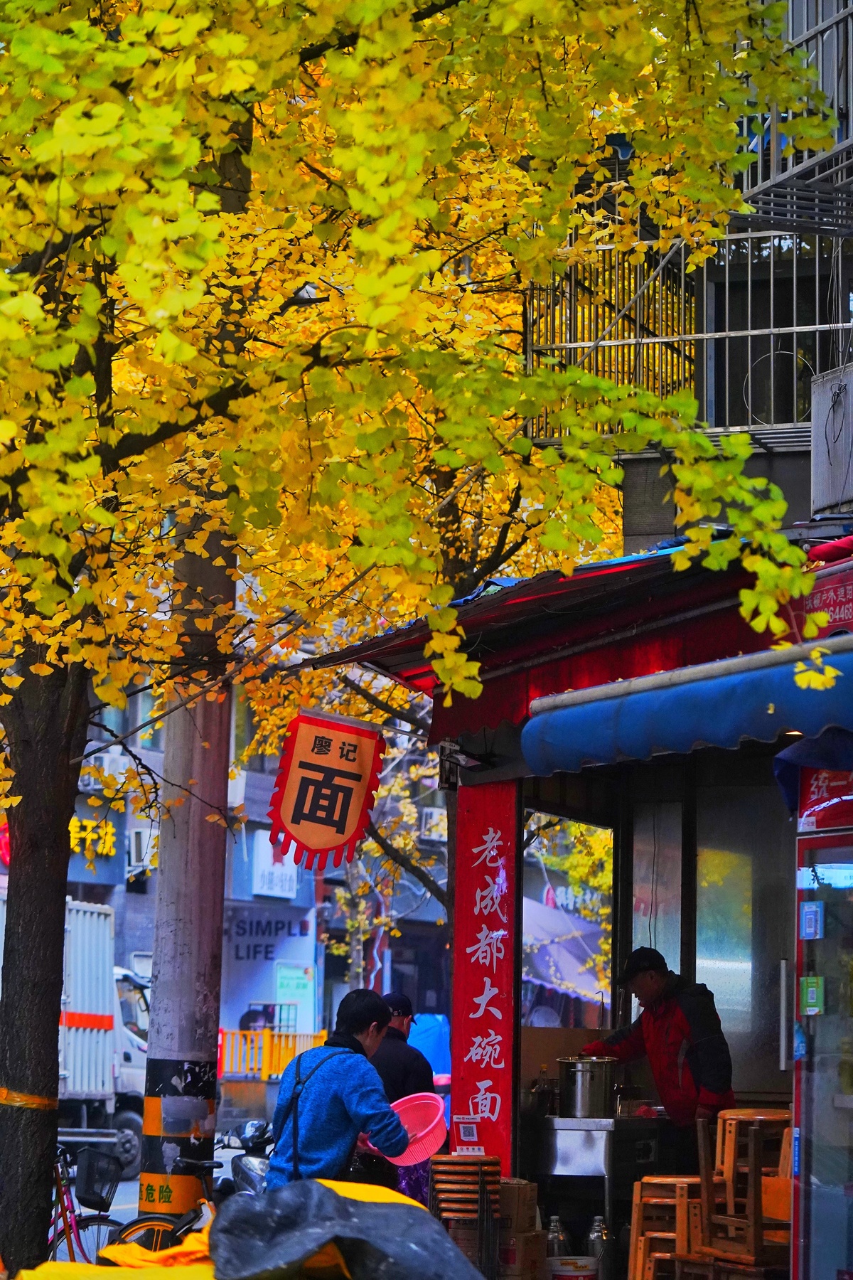 11月27日,寻常周六,拥有金色银杏的成都小街小巷,无论怎么看,它都是满屏的烟火气,这是成都的味道,美的如同一幅画。