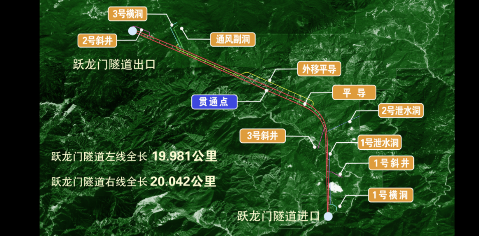 长达20公里的跃龙门隧道,贯通后,其接口的横向误差值28毫米、高程18毫米,分别是规范要求误差值的7%和1/3,精度极高。