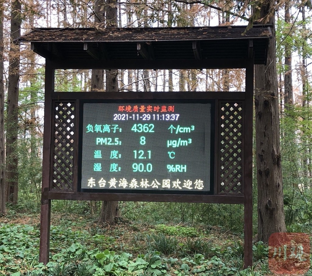 每平方厘米含有4362个负氧离子!PM2.5每平方厘米仅8微克!11月29日上午11时许,公园内环境质量实时监测信息屏上显示着森林中丰富的负氧离子含量。