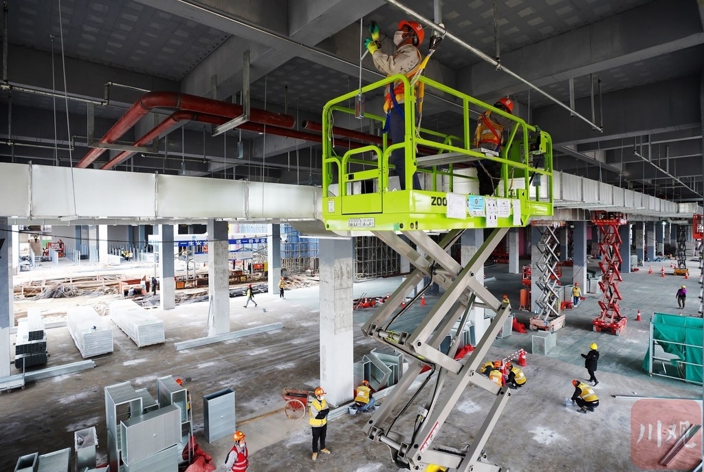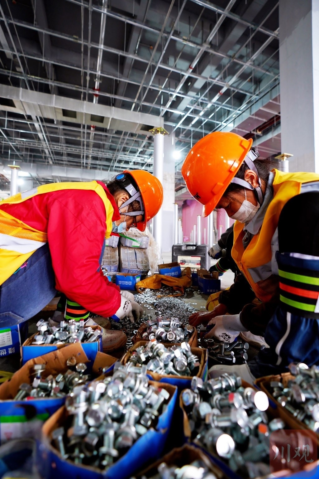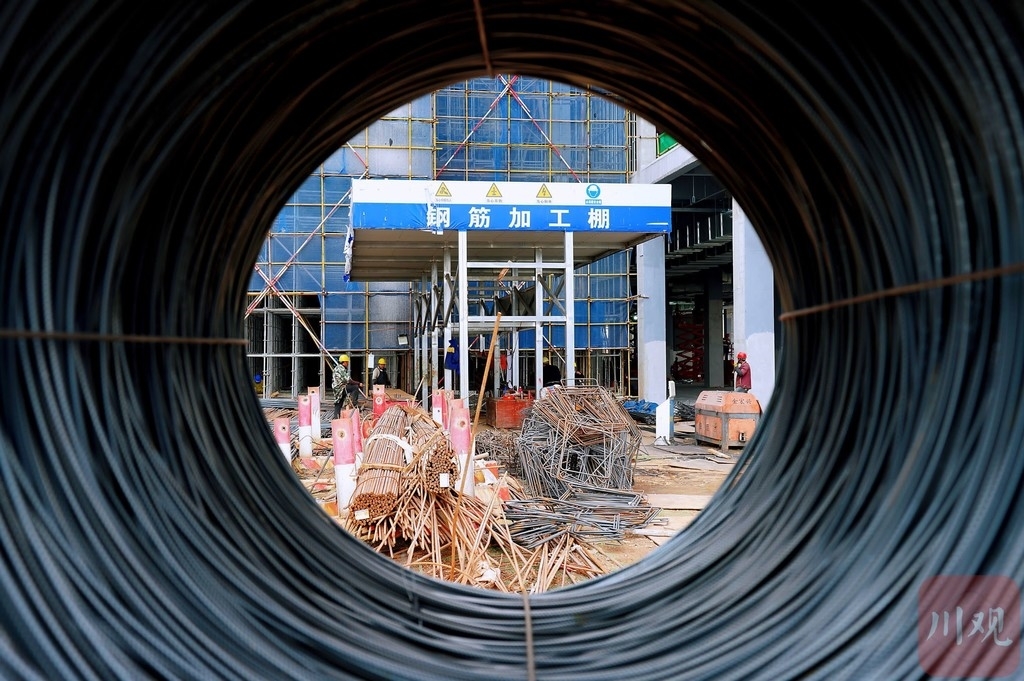 同样热闹的场景,也出现在十几公里外的绵阳高新区高发智能制造产业园项目。远远望去,三十多台塔吊犹如钢铁森林。为了抢在年底前完成主体建筑,2000多人同步在现场施工。走近现场,伴随焊花飞溅,切割机声、钢管撞击声、打钻声……响成一片,怎一个“热闹”能够形容。