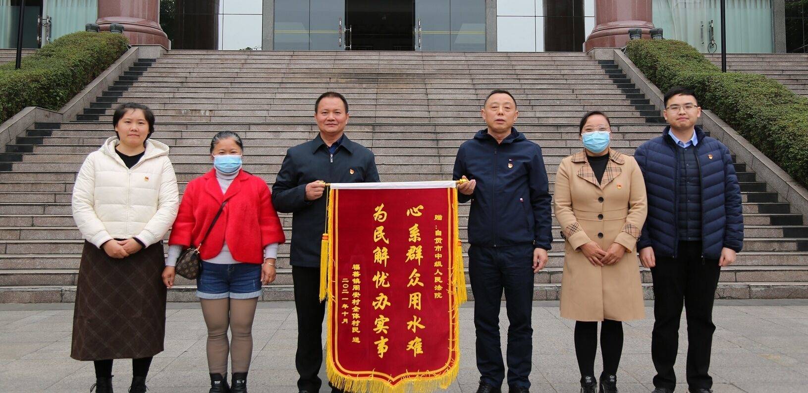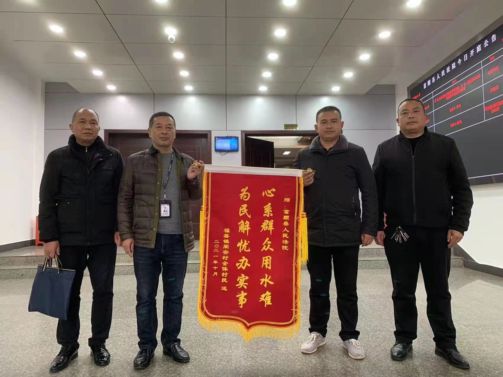 12月1日,记者从自贡市中级人民法院获悉,近日,富顺县福善镇周安村的群众代表将写有“心系群众用水难,为民解忧办实事”的锦旗分别送到自贡中院、富顺县法院及县供水、供电公司,表达对各家单位统筹协调、特事特办的感谢。