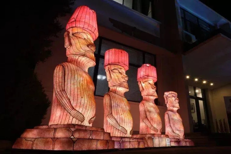 11月26日晚,在“智利周”系列活动之一的智利驻华大使馆抖音智利奇妙夜上,自贡彩灯精彩亮相,自贡灯彩集团精心制作的智利车厘子、羊驼、帝企鹅、复活岛石像等富有智利特色元素的10余组彩灯“点亮”现场,让这个夜晚独具一格。