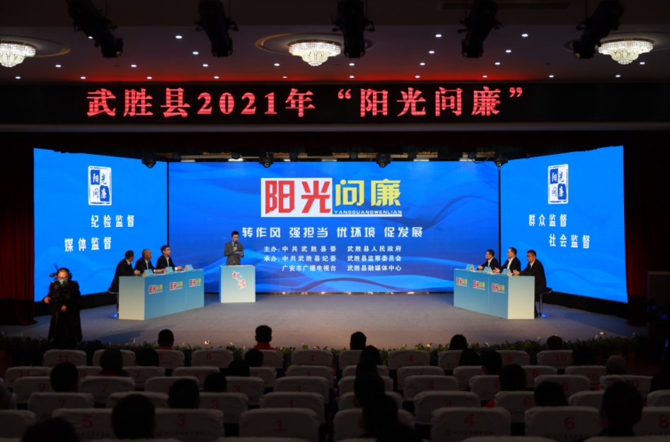 12月1日下午,在广安市武胜县2021年“阳光问廉”节目直播现场,主持人和问廉代表抛出一个个尖锐问题,令台上被问廉的对象面红耳赤。