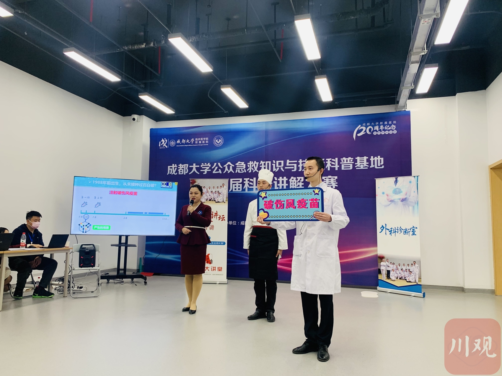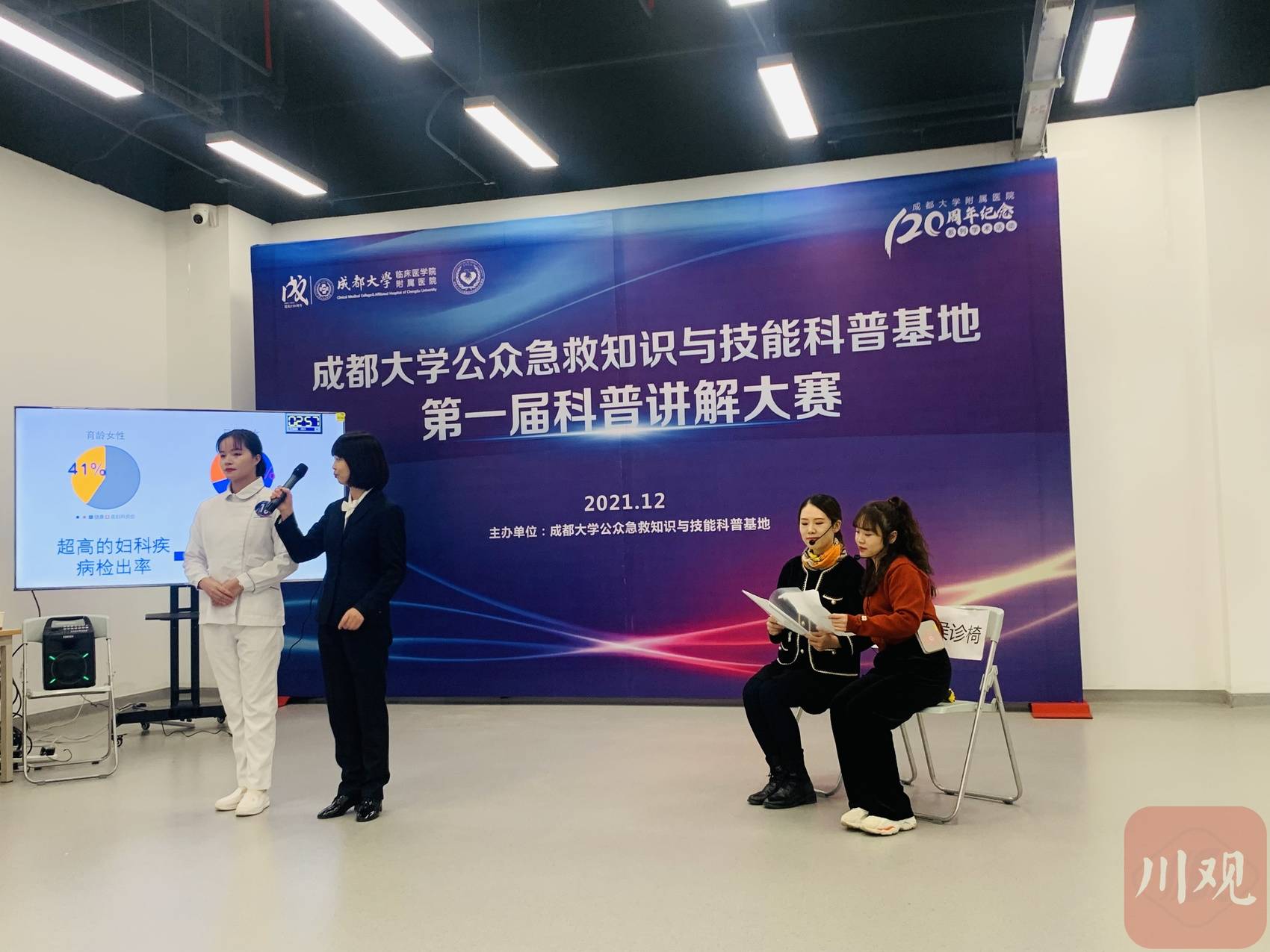这场科普讲解大赛是成都大学附属医院建院120周年系列活动之一,选手多来自9家国家三级甲等医院——四川省人民医院、成都大学附属医院、成都市第一人民医院、成都市第二人民医院、成都市第六人民医院、成都市第七人民医院、成都市第三人民医院、三六三医院、德阳市人民医院,还有成都大学基础医学院护理学院的学生和应急救援讲师参赛。
