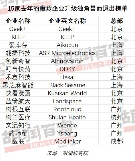 胡润研究院搜集了近1500家新兴行业非上市企业数据,从中甄选出了171家中国高成长性瞪羚企业,上榜数量比去年增加71家,其中新上榜114家,29家企业通过最新一轮融资成长为独角兽企业或成功登陆资本市场而退出榜单,1家企业因被并购而退出榜单,13家企业因经营不善或行业问题而退出榜单。