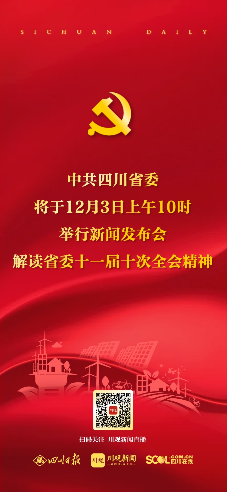 中共四川省委将于12月3日上午10时举行新闻发布会,解读省委十一届十次全会精神。发布会将介绍大会基本情况、主要特点及《中共四川省委关于深入学习贯彻党的十九届六中全会精神巩固党史学习教育成果的决定》《中共四川省委关于以实现碳达峰碳中和目标为引领推动绿色低碳优势产业高质量发展的决定》起草有关情况。