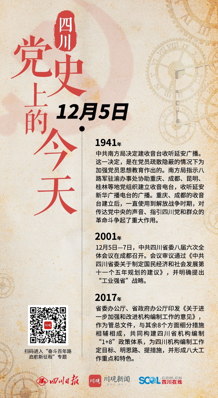 1941年 中共南方局决定建收音台收听延安广播。这一决定,是在党员疏散隐蔽的情况下为加强党员思想教育作出的。南方局指示八路军驻渝办事处协助重庆、成都、昆明、桂林等地党组织建立收音电台,收听延安新华广播电台的广播。重庆、成都的收音台建立后,一直使用到解放战争时期,对传达党中央的声音、指引四川党和群众的革命斗争起了重大作用。