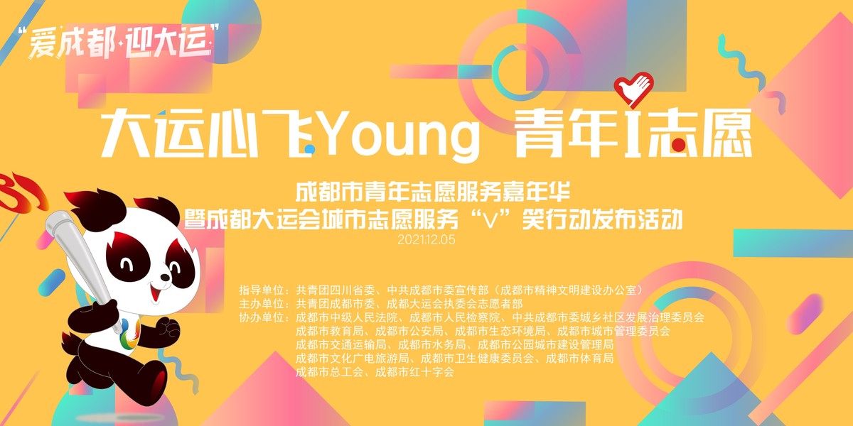 12月5日,在第36个国际志愿者日到来之际,成都大运会执委会志愿者部联合共青团成都市委共同开展“大运心飞Young·青年I志愿”成都青年志愿服务嘉年华暨成都大运会城市志愿服务“V”笑行动发布活动。