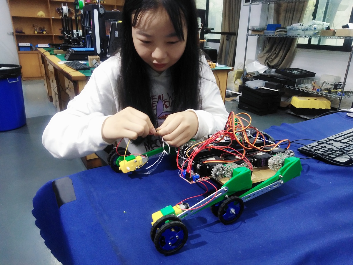进入大学后,卢成娅却迷茫了,“虽然每天也是上课下课,但总感觉少了什么。”一次偶然的机会,卢成娅看到一张机器人创新实验室招新的海报,被其中的内容吸引,很想去试试,却又有些不自信,心里打起鼓来:“要做成一个智能机器人也太难了吧。”